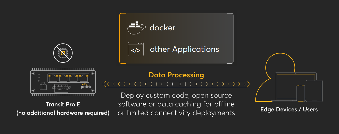 Run containerized software without additional hardware. Deploy custom code, open source software or data caching for offline or limited connectivity deployments.